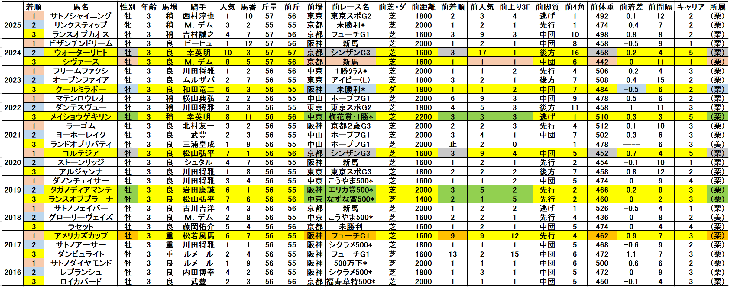 以下が2016年以降の京都開催7年分の脚質傾向です。