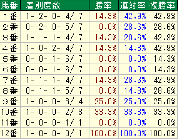 今度は6番人気以下限定の枠順傾向です。