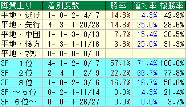 脚質では大きな片寄りはない。