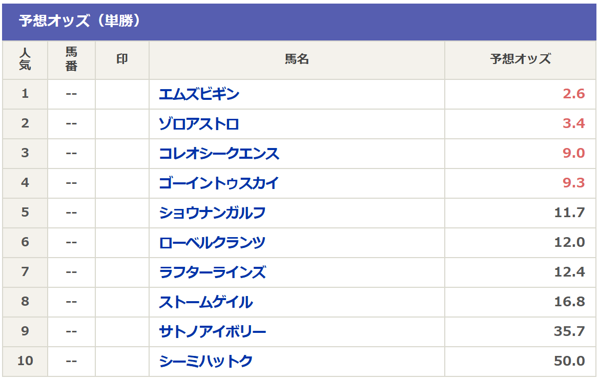 そして現在のnetkeibaさんの予想オッズは以下の通りです。