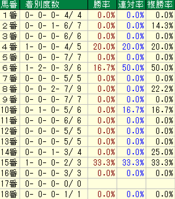 このレースにおいて極めて好走率が悪いデスデータを調べました。