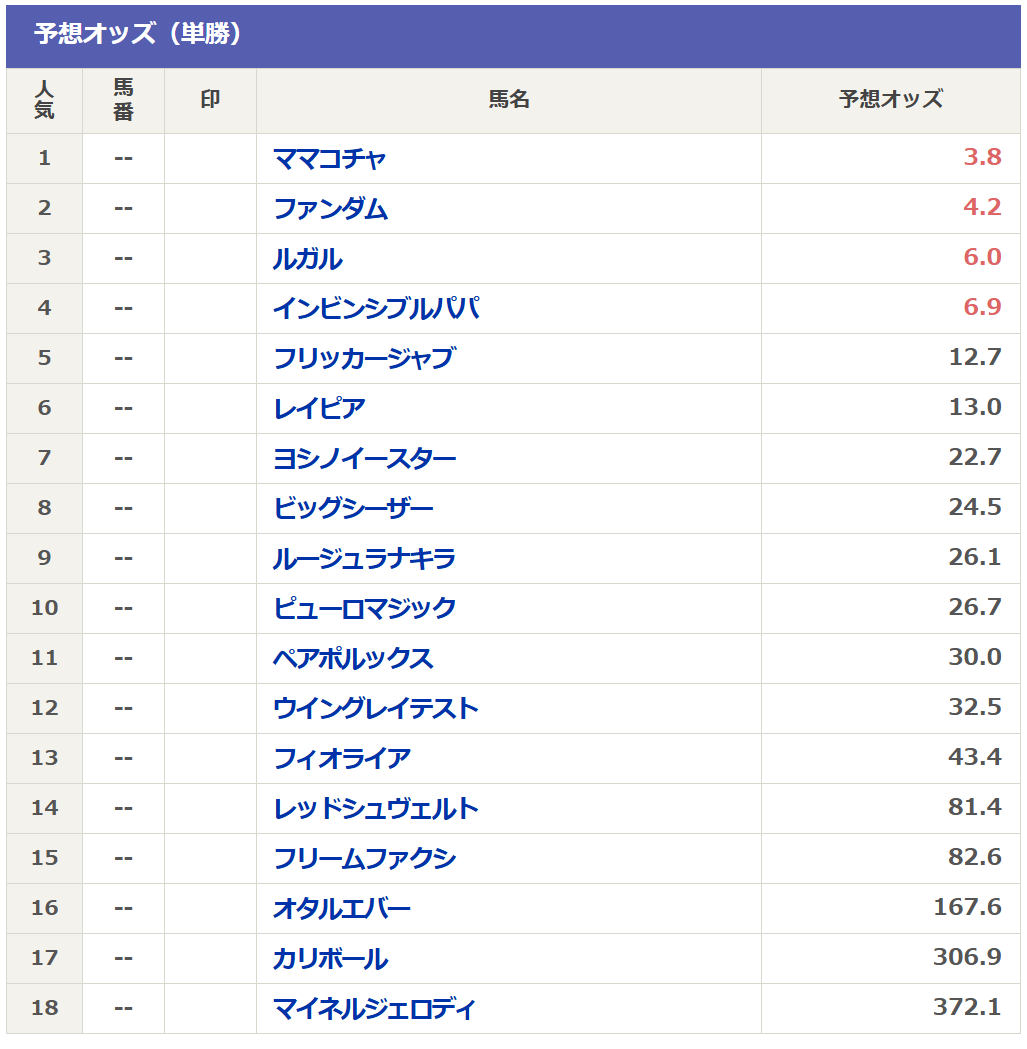 そして現在のnetkeibaさんの予想オッズは以下の通りです。