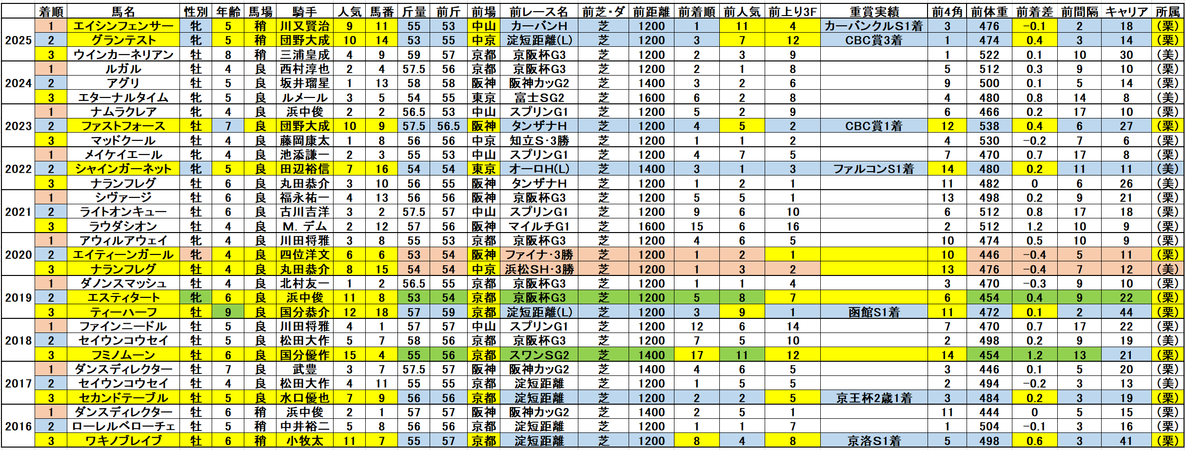 唯一牡馬で連対した穴馬は次走高松宮記念を制したファストフォース。