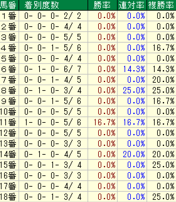 今度は6番人気以下限定の枠順傾向です。