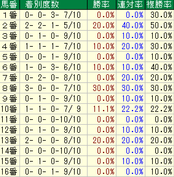 以下が過去10年の枠順傾向です。