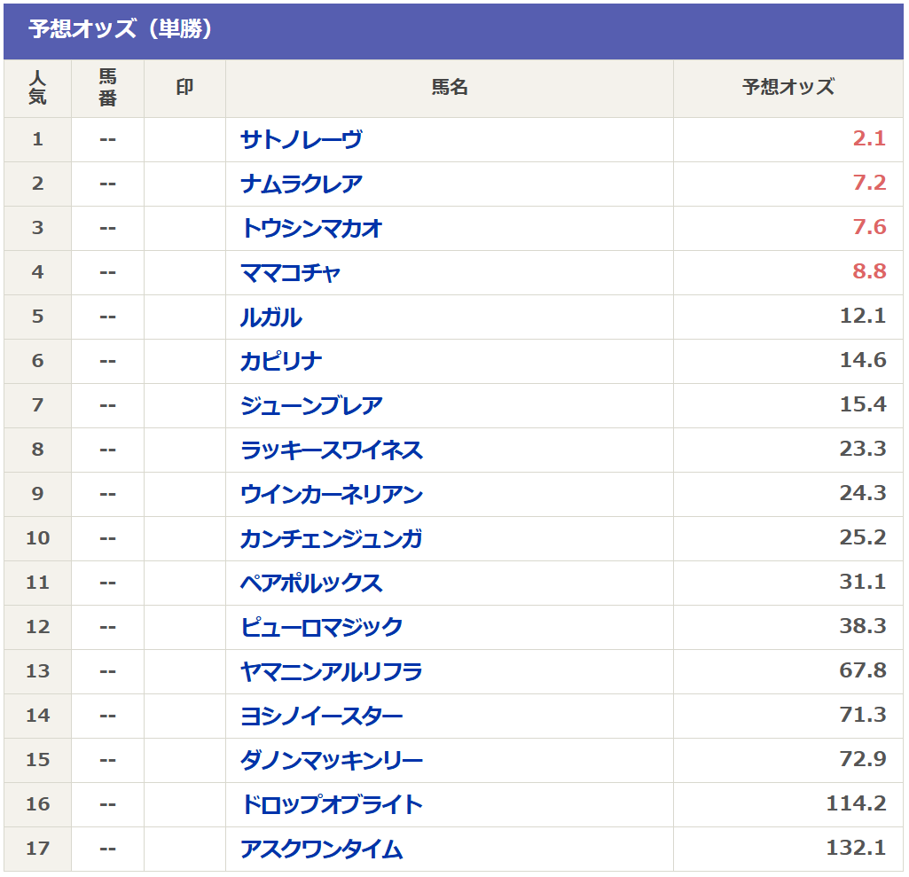 そして現在のnetkeibaさんの予想オッズは以下の通りです。