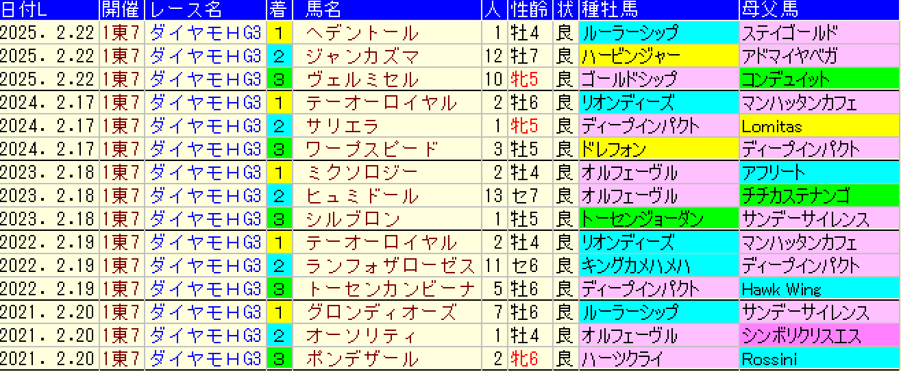 他にも好走馬がいますが、リピーターのテーオーロイヤルを除くと上記の血統の好走が目立ちますね。