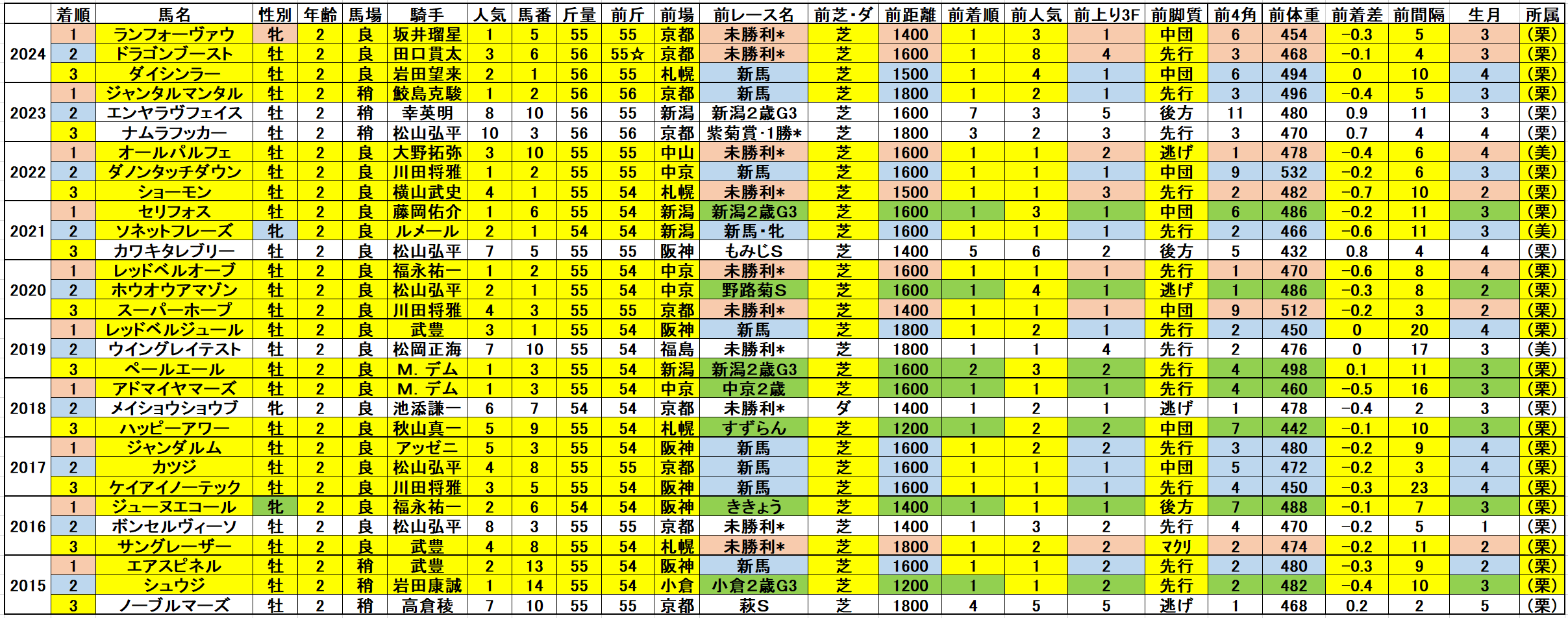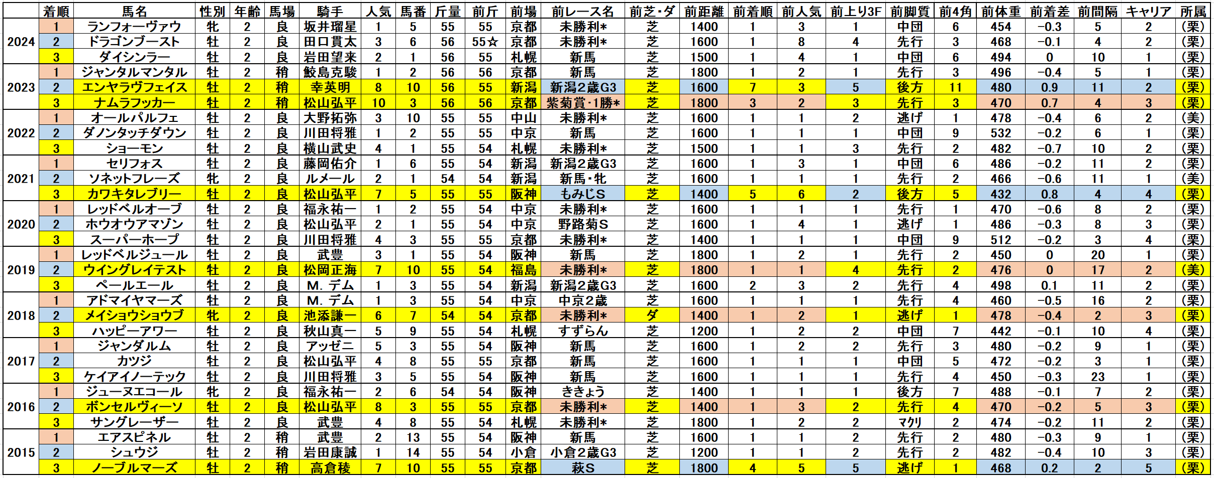 以下が2015年以降の京都開催過去7年分の枠順傾向です。
