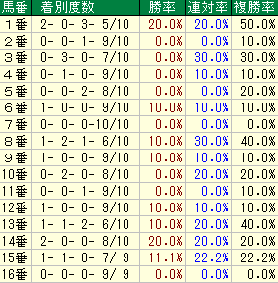 以下が過去10年の枠順傾向です。