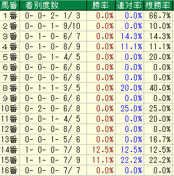 ただ16番ゲートからは好走馬無し。