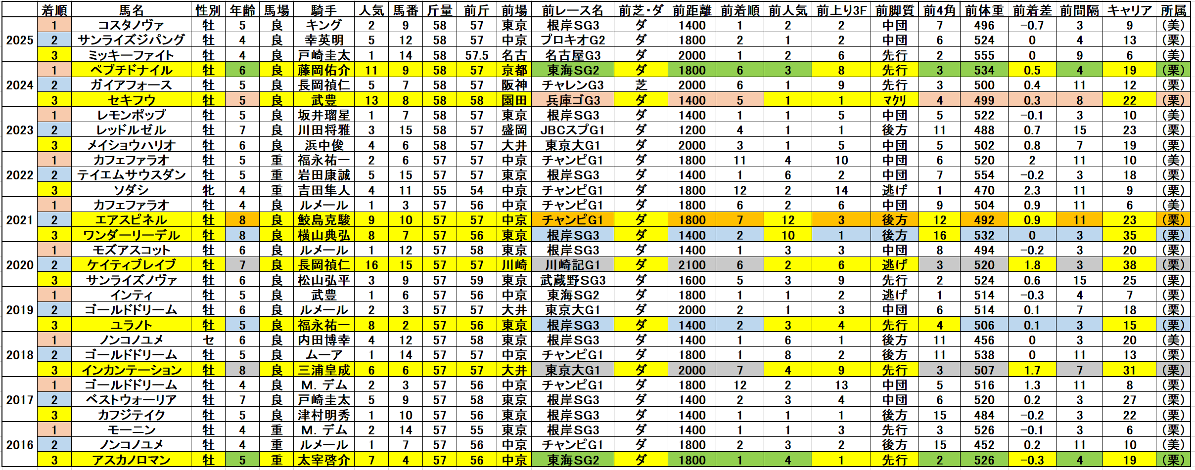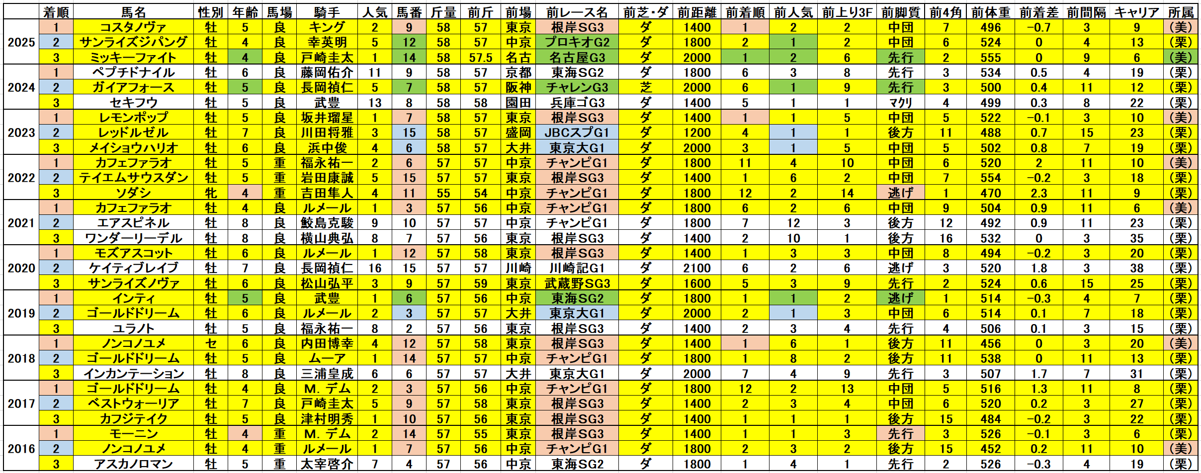 これを基に考えると前走根岸ステークス・チャンピオンズカップ組以外なら…
