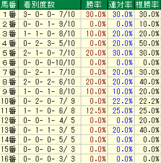 以下が過去10年の枠順傾向です。