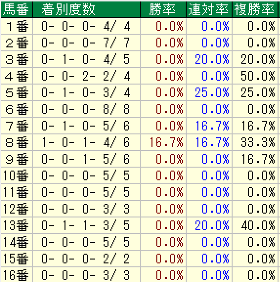 今度は6番人気以下限定の枠順傾向です。
