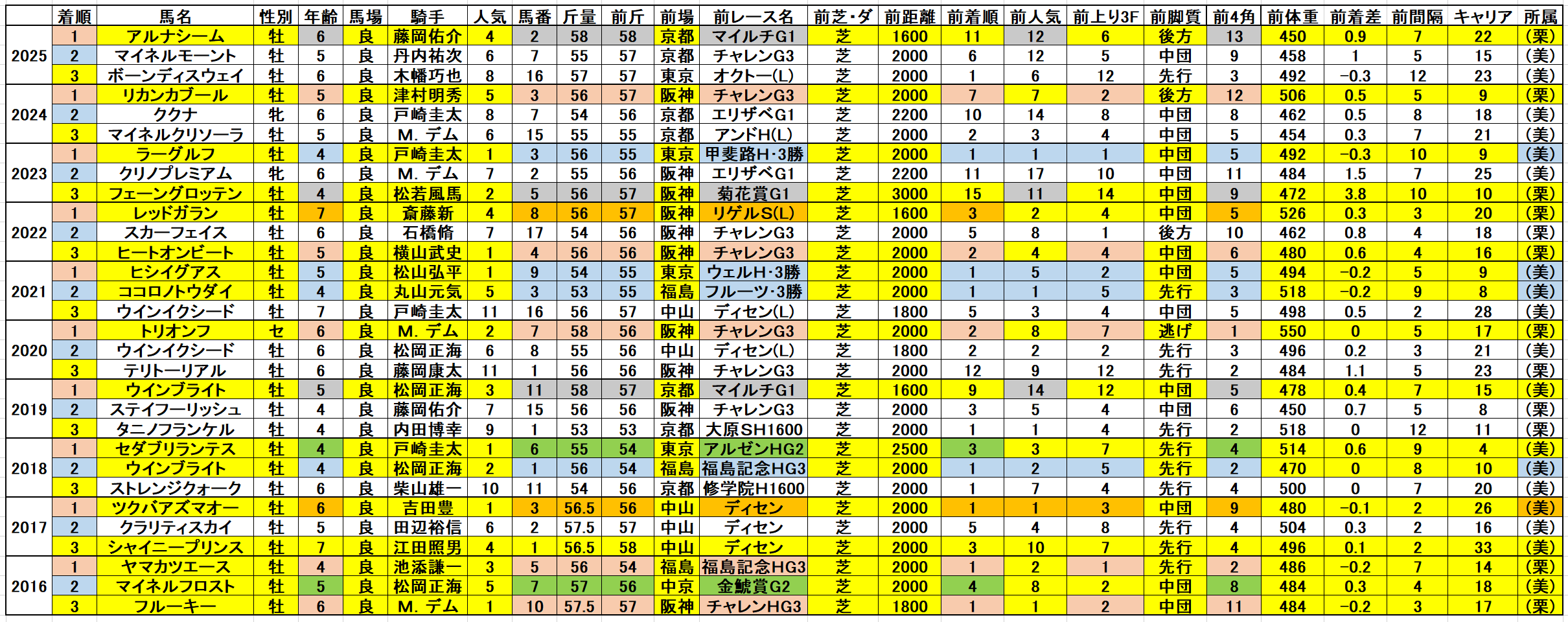 現時点の予想オッズを見ると3番人気以下が大混戦ですが、そのままアンゴラブラック・カネラフィーナ・マイネルモーント・シリウスコルト・グランディア以外を穴馬として扱います。