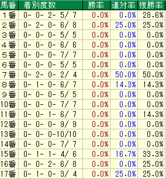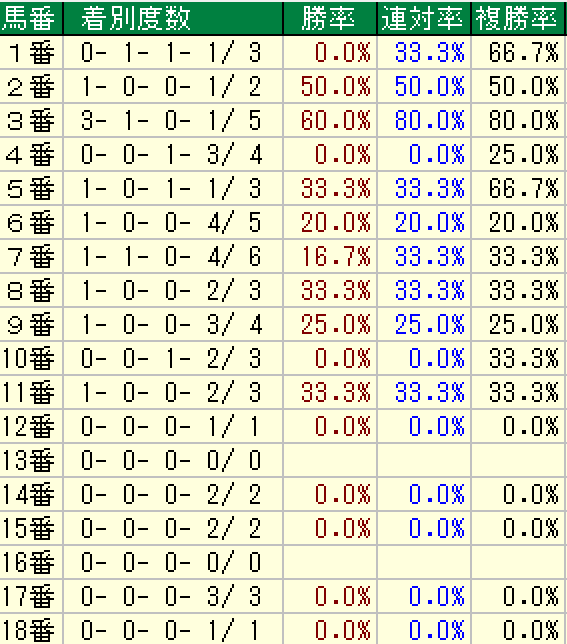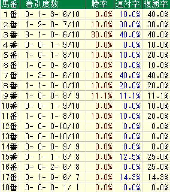 このレースにおいて極めて好走率が悪いデスデータを調べました。