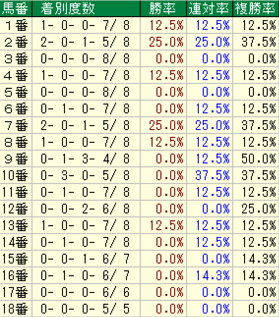 以下が12月開催になった2017年以降の過去8年分の枠順傾向です。