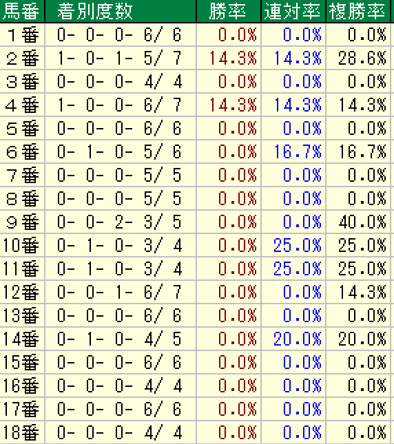 このレースにおいて極めて好走率が悪いデスデータを調べました。