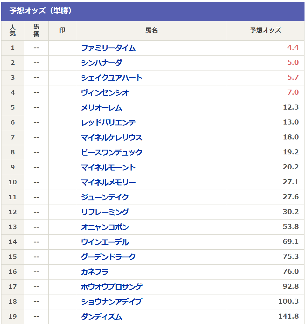 そして現在のnetkeibaさんの予想オッズは以下の通りです。