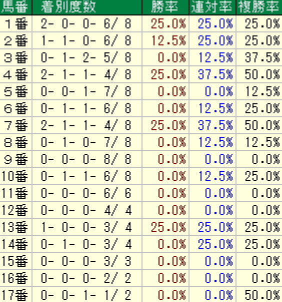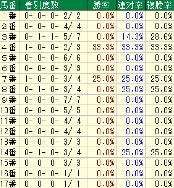 このレースにおいて極めて好走率が悪いデスデータを調べました。