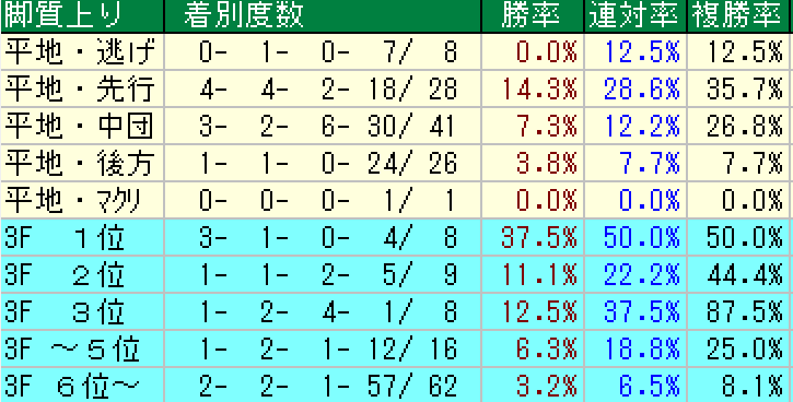 それではこれから脚質傾向・枠順傾向・血統傾向・消去法・デスデータの順で調べていきます。