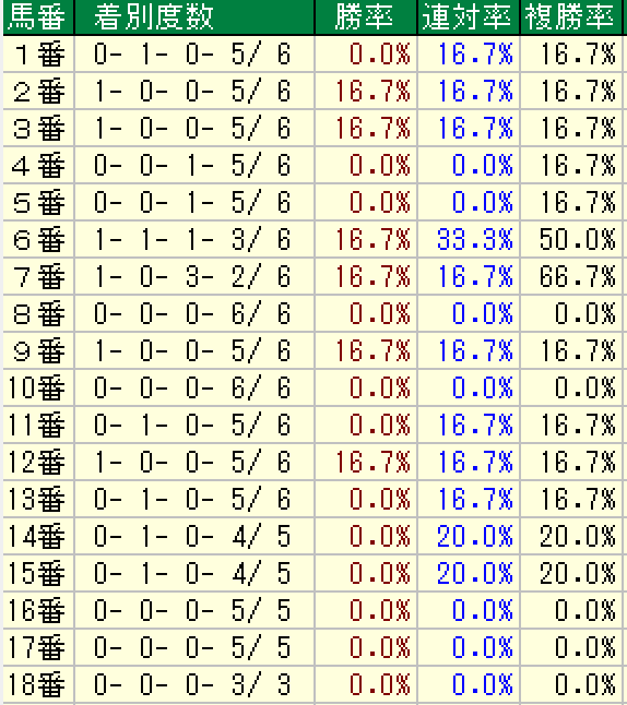 極端な人気薄はあまり買わないが、このレースは爆穴の激走も多いので内枠に入ったなら狙ってみたい。