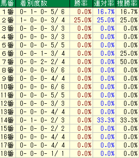 このレースにおいて極めて好走率が悪いデスデータを調べました。