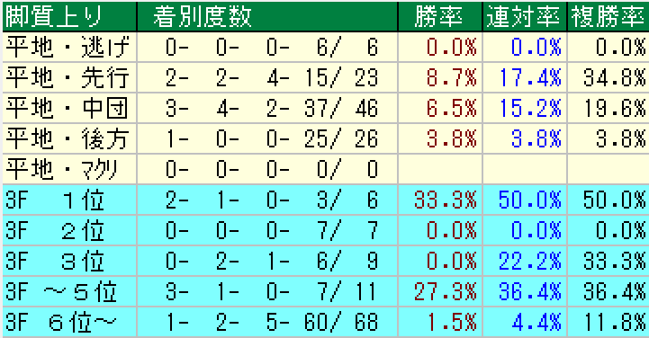 それではこれから脚質傾向・枠順傾向・血統傾向・消去法・デスデータの順で調べていきます。