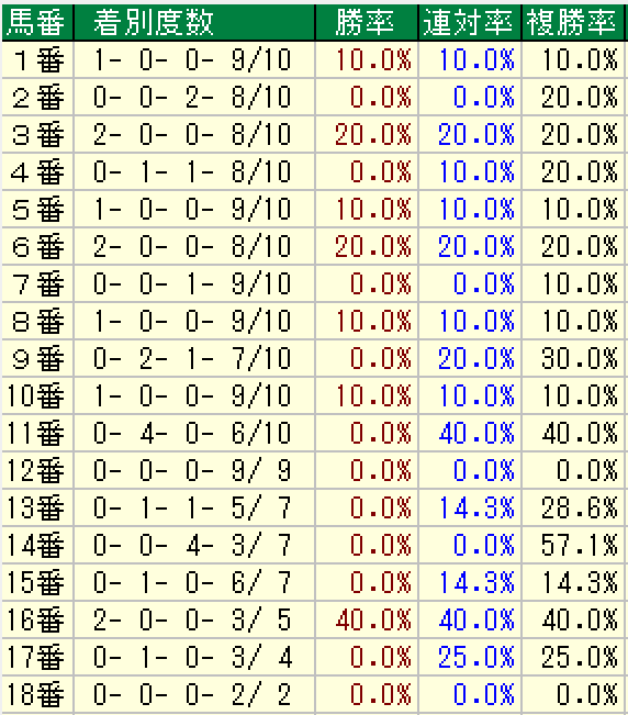 以下が過去10年の枠順傾向です。