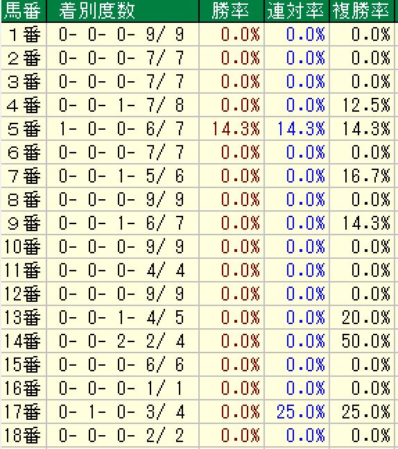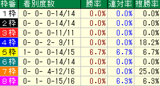 全体傾向でもやはり4枠以降の成績が良いです。