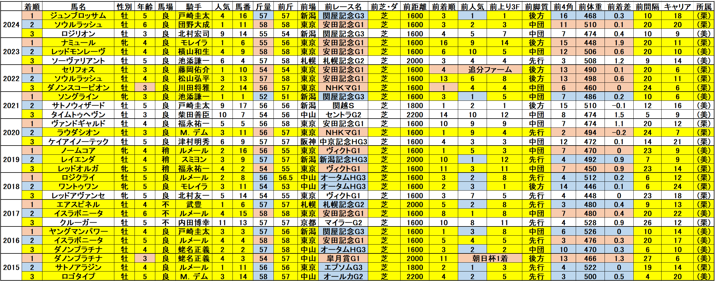 それではこれから脚質傾向・枠順傾向・血統傾向・消去法・デスデータの順で調べていきます。