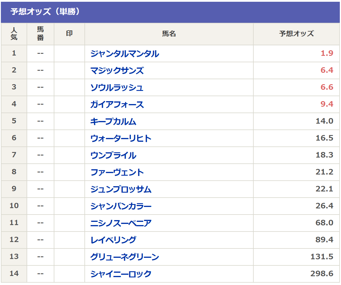 そして現在のnetkeibaさんの予想オッズは以下の通りです。