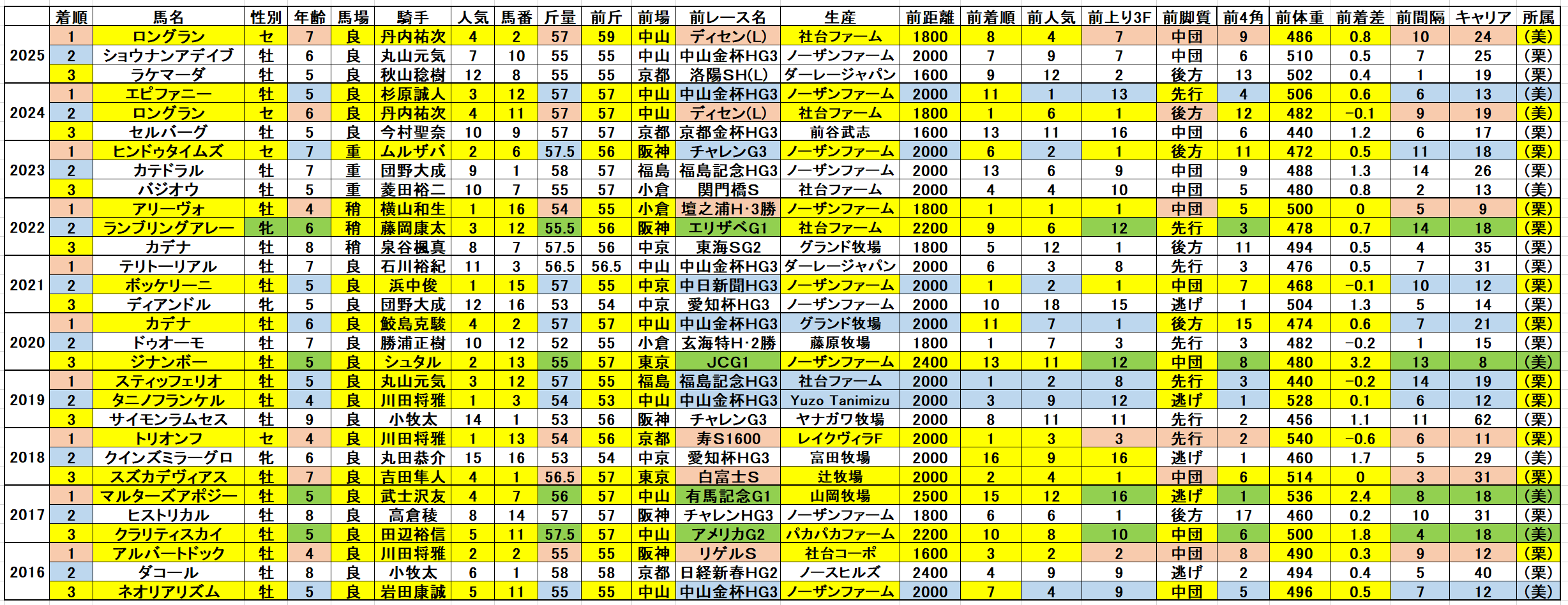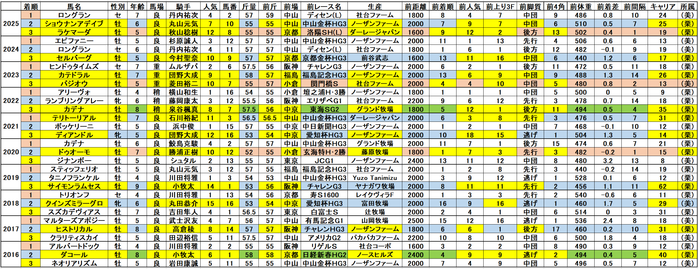 またこのデータは見方によっては捉え方は色々ですが、基本的に年単位で来た馬がいるかいないかで考えています。