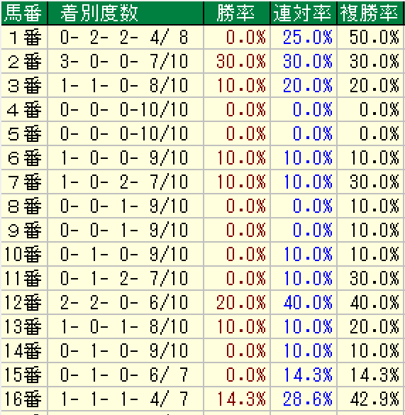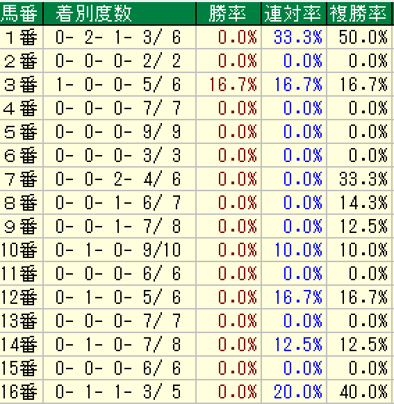 このレースにおいて極めて好走率が悪いデスデータを調べました。