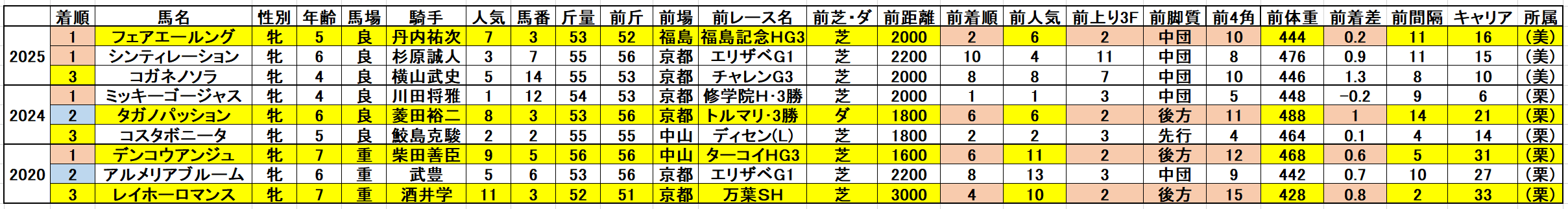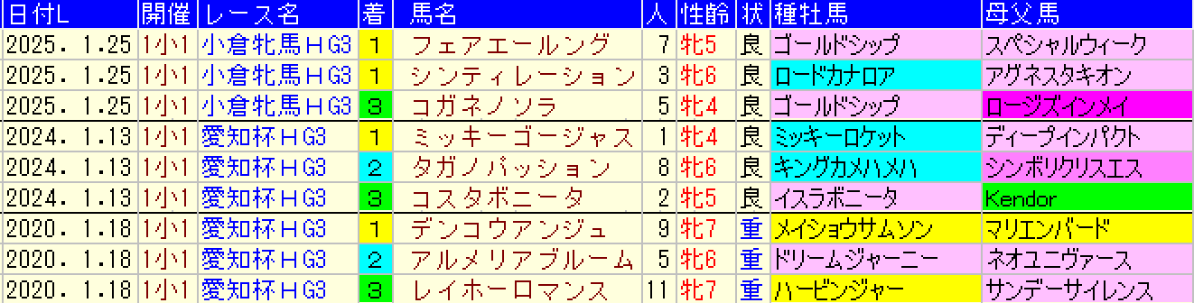 昨年からの新設重賞ですが、旧愛知杯で2016年以降の小倉開催となると2020年・2024年と名称が小倉牝馬ステークスに変った昨年の計3年だけしかありません。