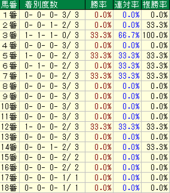 このレースにおいて極めて好走率が悪いデスデータを調べました。