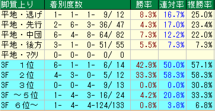 ・前走上り2位以下の追い込み馬(0・0・0・19)複勝率0%