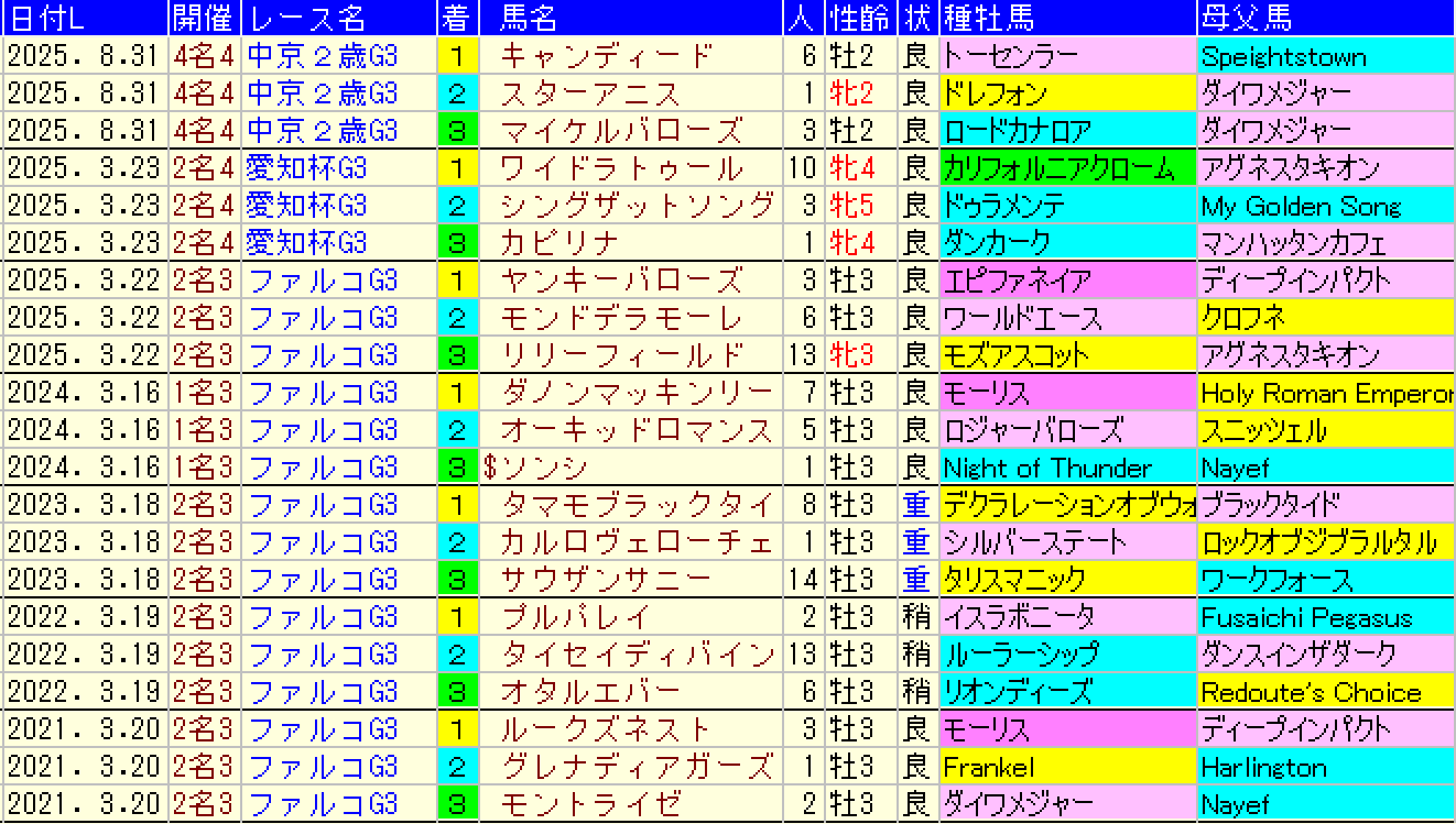 2021年以降の中京芝1400m重賞の傾向は以下の通りです。