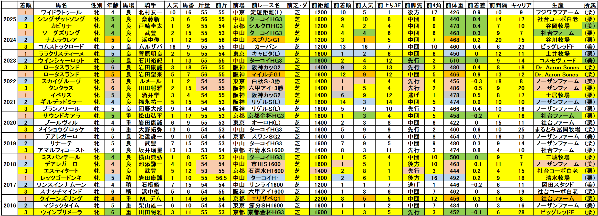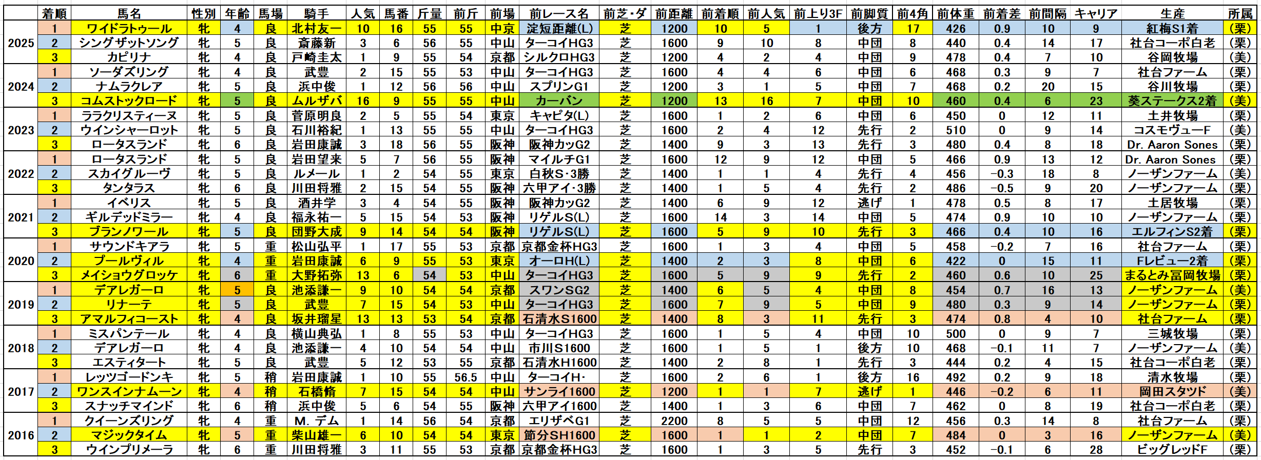 昨年の好走馬3頭はこの条件に合致する。