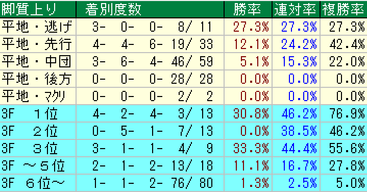 前走を見ても傾向は同じで後方脚質の馬は避けたい。
