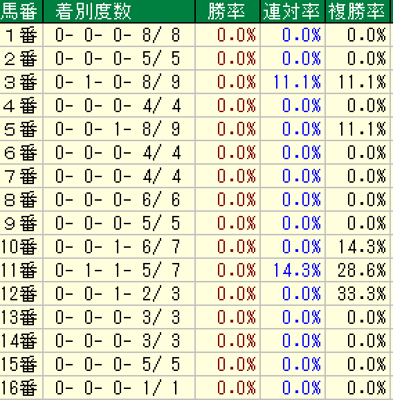このレースにおいて極めて好走率が悪いデスデータを調べました。