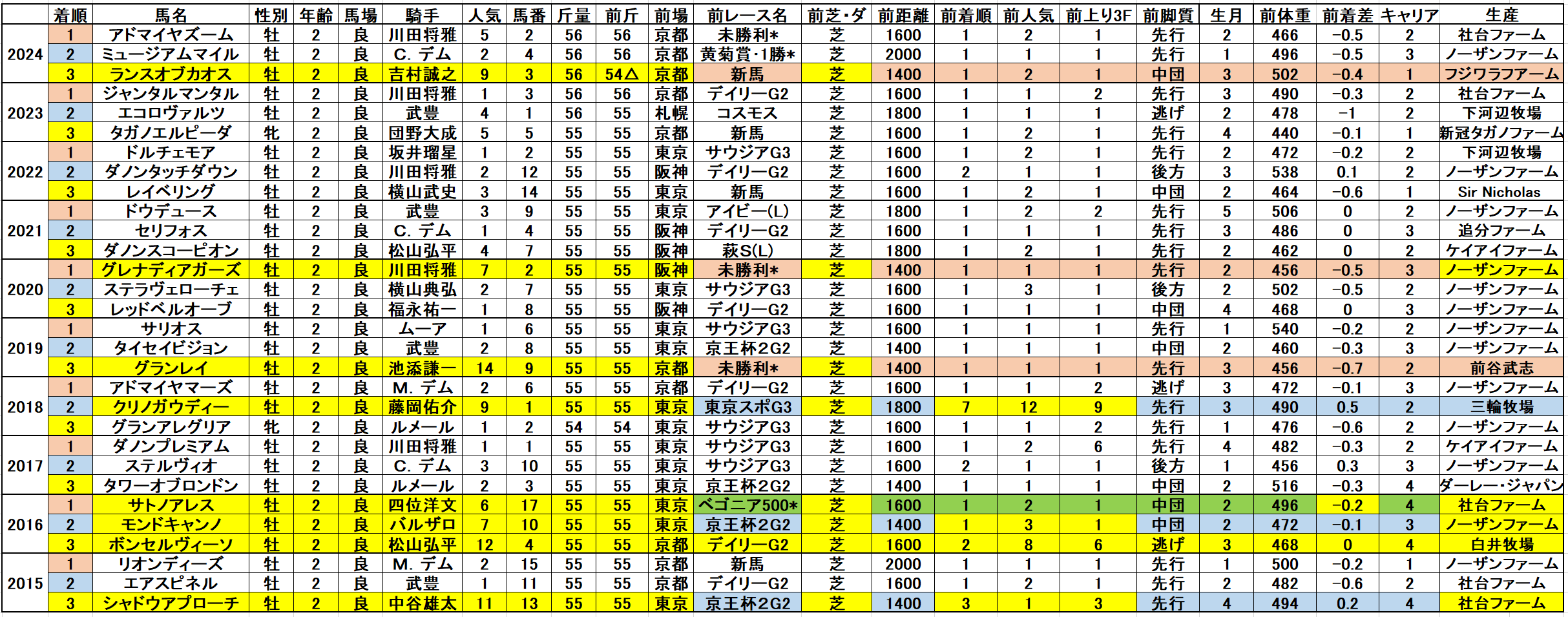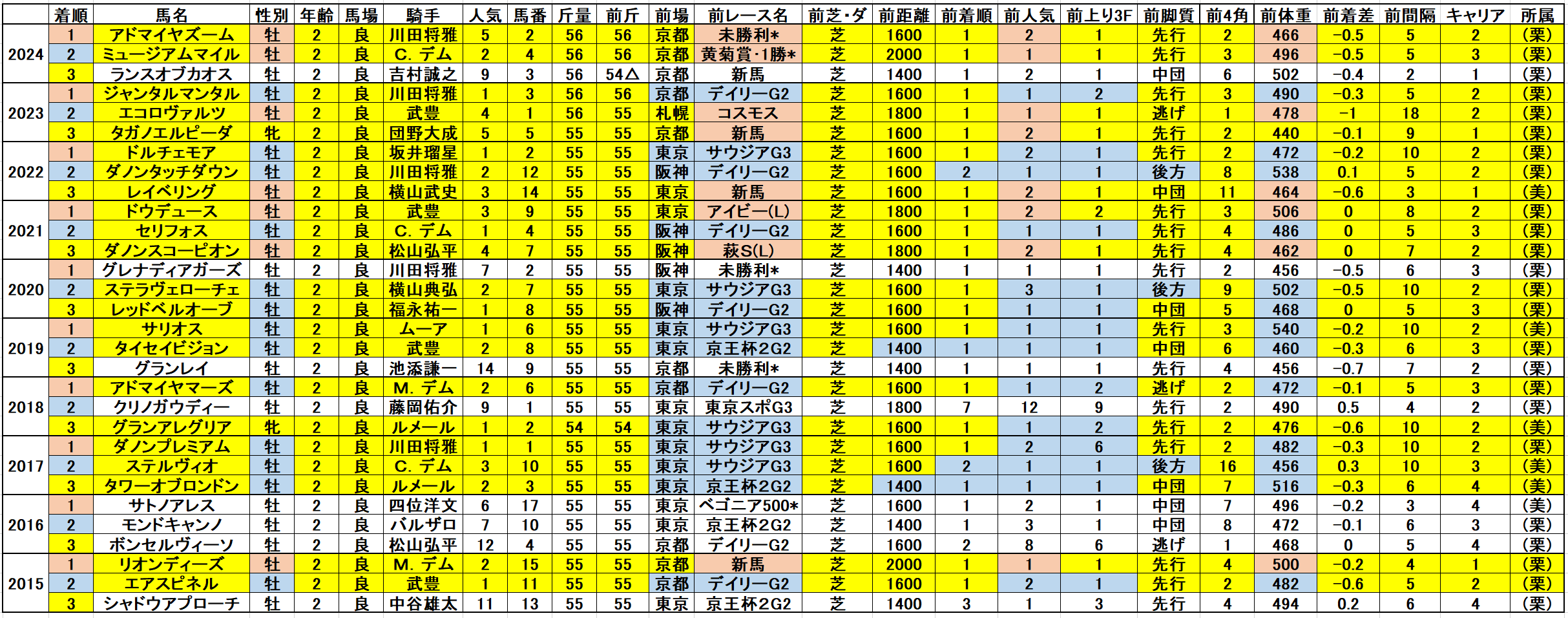 過去9年中7年で好走馬が1頭以上いますから、脚質面ではこの2頭は注目ですね。