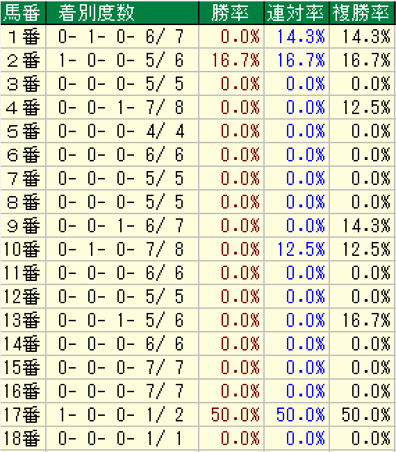 このレースにおいて極めて好走率が悪いデスデータを調べました。