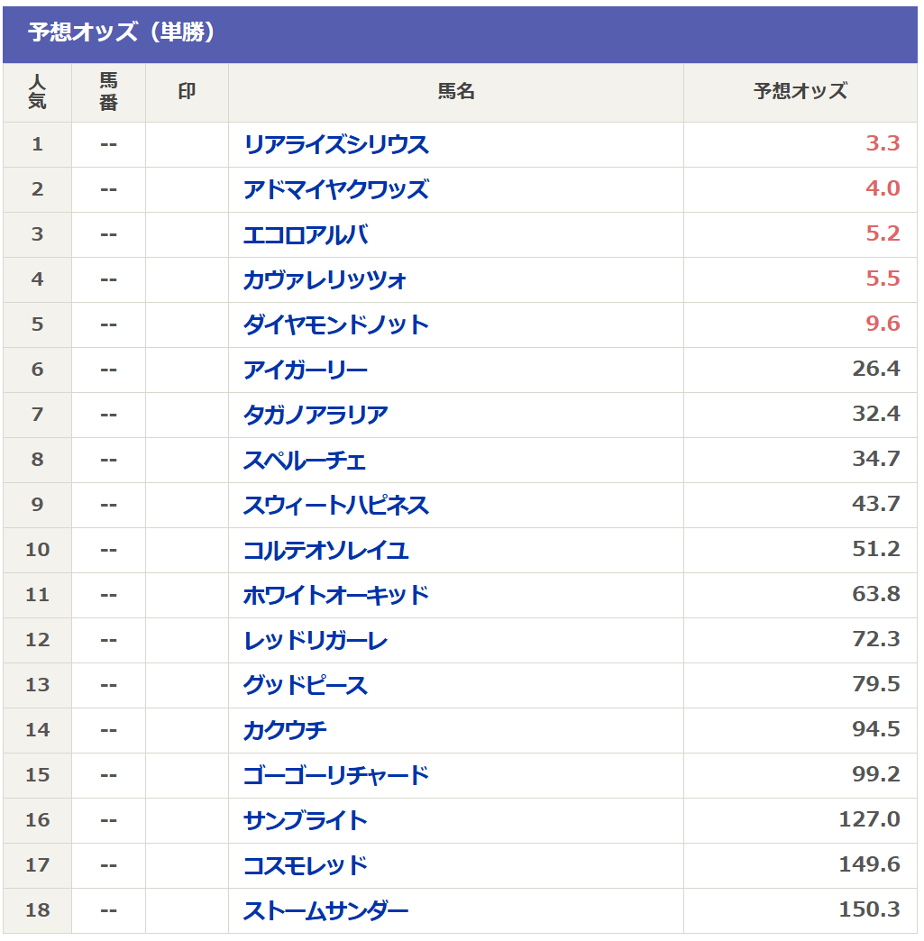 現時点の予想オッズだと5頭立てみたいなオッズになっています。