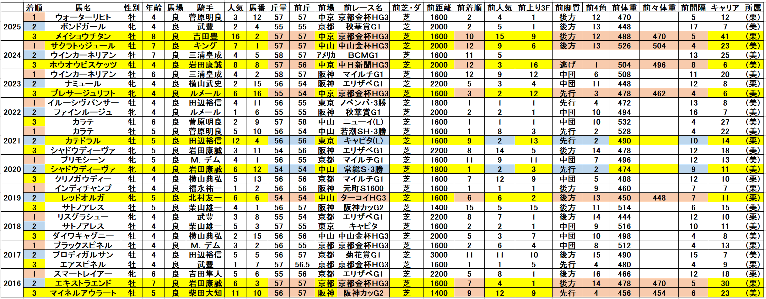 昨年は16番人気のメイショウチタンが激走、一昨年は3番人気以内馬が全て飛んだように近年は荒れ模様。