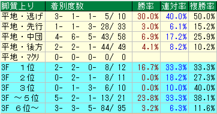 それではこれから脚質傾向・枠順傾向・血統傾向・消去法・デスデータの順で調べていきます。