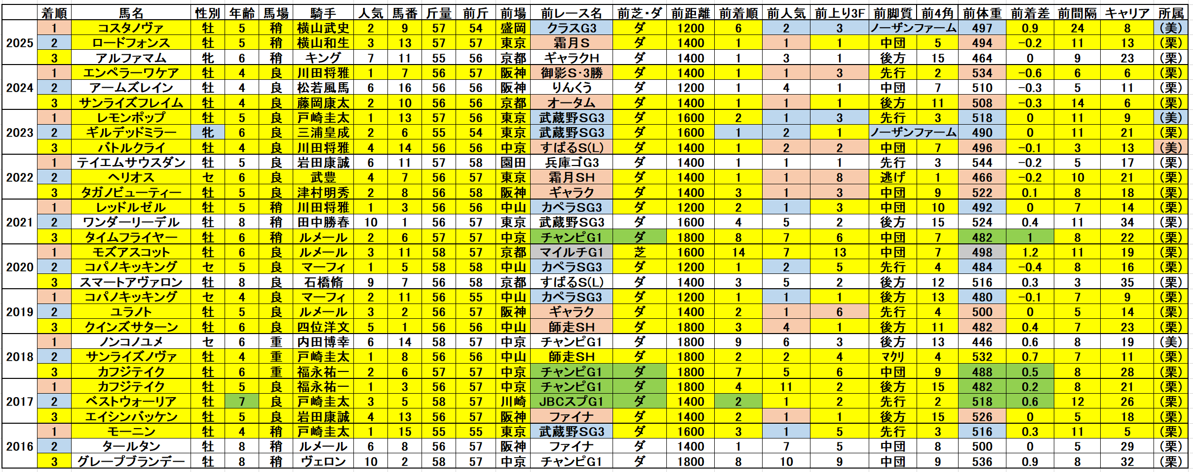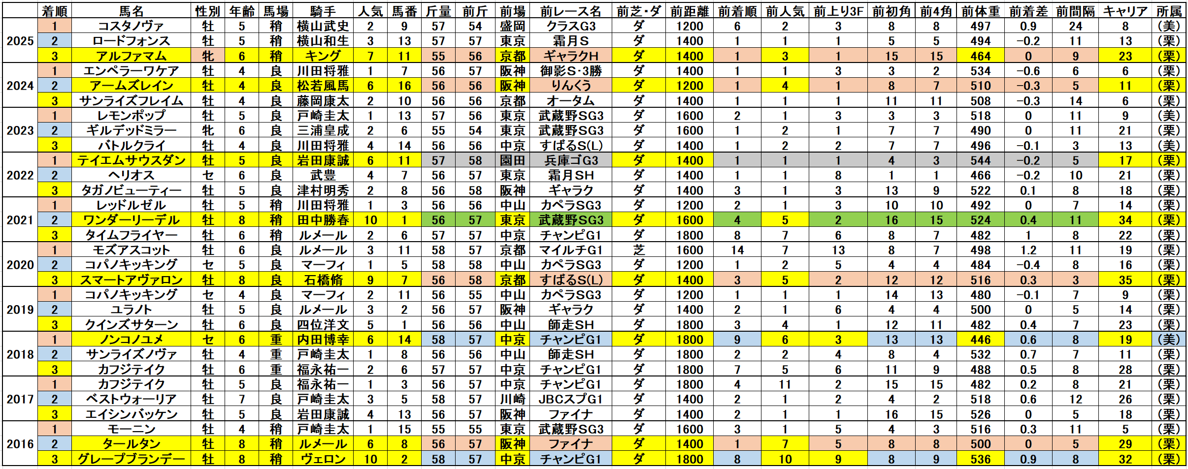 該当馬は3頭ですがフリームファクシは除外対象です。