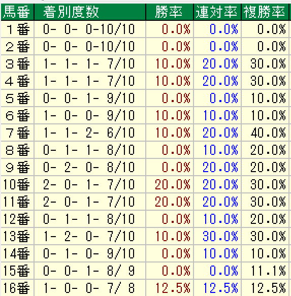 以下が過去10年の枠順傾向です。