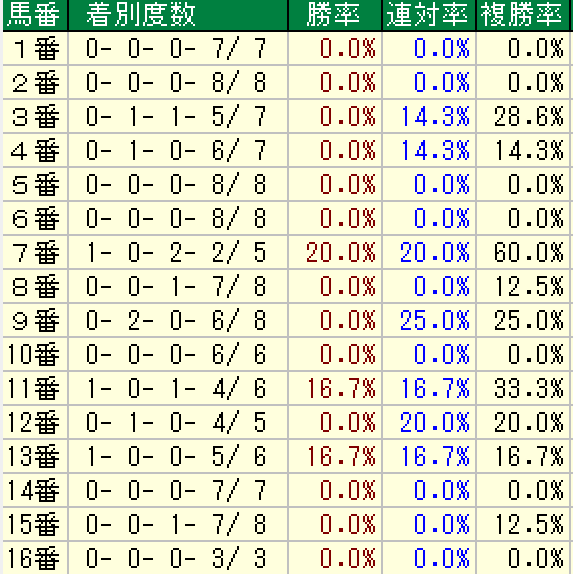 今度は6番人気以下限定の枠順傾向です。