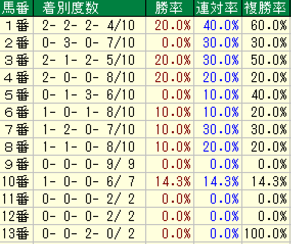 以下が過去10年の枠順傾向です。