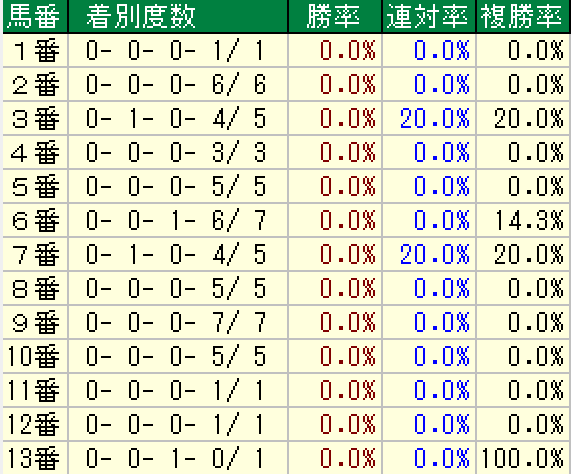 このレースにおいて極めて好走率が悪いデスデータを調べました。